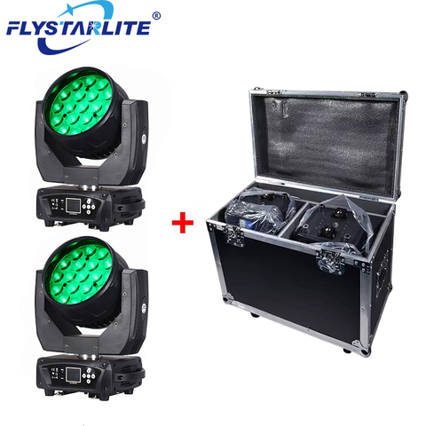Flystar照明2pcs 19x15W DMX 19*15 RGBW 4in1ズームウォッシュLEDムービングヘッドライトフライトケース付き